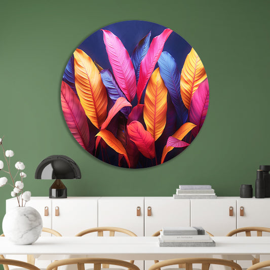 Abstract bladeren in roze en blauw aluminium muurcirkel
