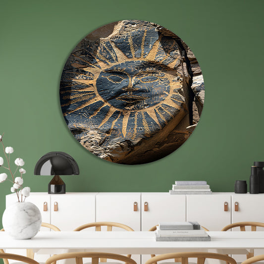 Abstract zonnegelaat met symbolen aluminium muurcirkel