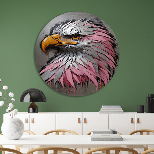 Abstract zilver en roze adelaarskop olieverfschilderij aluminium muurcirkel