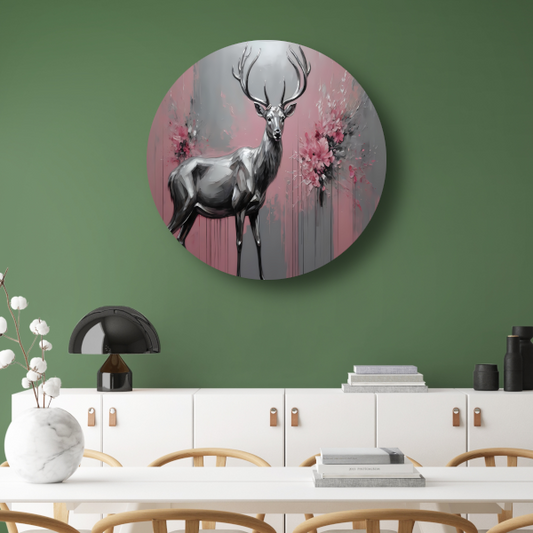 Abstract Zilver Hert in Roze Bloemenveld aluminium muurcirkel