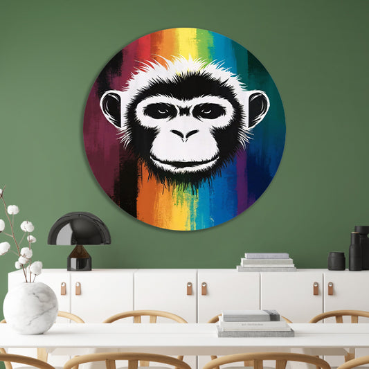 Abstracte aap met regenboog achtergrond aluminium muurcirkel
