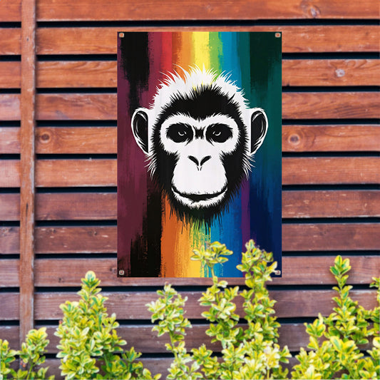 Abstracte aap met regenboog achtergrond tuinposter