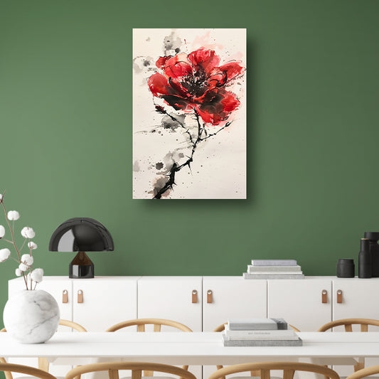 Abstracte aquarel schilderij van een rode bloem canvas met baklijst
