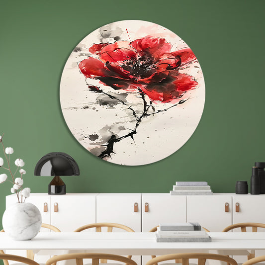 Abstracte aquarel schilderij van een rode bloem aluminium muurcirkel