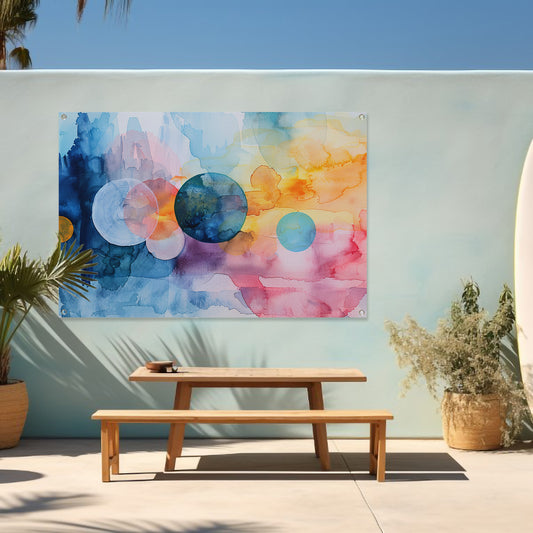 Abstracte aquarel met kleurrijke cirkels tuinposter
