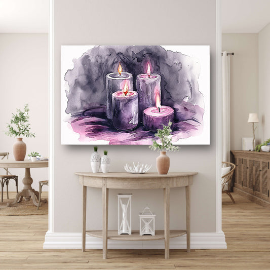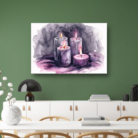 Abstracte aquarel schilderij van kaarsen canvas met baklijst