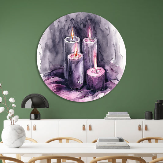 Abstracte aquarel schilderij van kaarsen aluminium muurcirkel