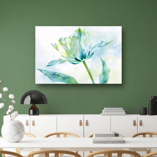 Abstracte aquarel van groene tulp bladeren canvas met baklijst