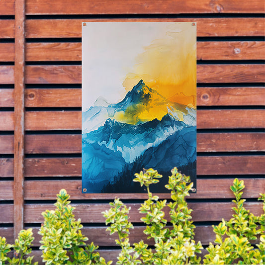 Abstracte aquarel van bergen en zon canvas met baklijst