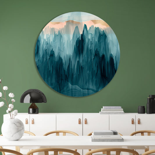 Abstracte bergen in blauw en turquoise forex muurcirkel