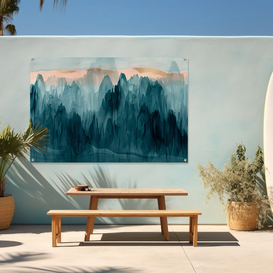 Abstracte bergen in blauw en turquoise acrylglas