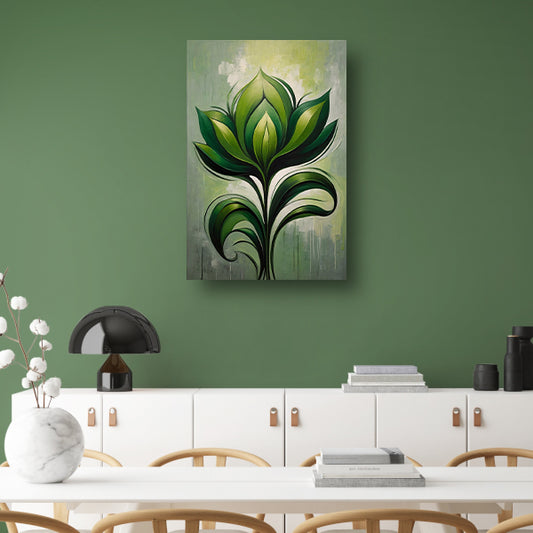 Abstracte Bloeiende Groene Bloem op Canvas canvas