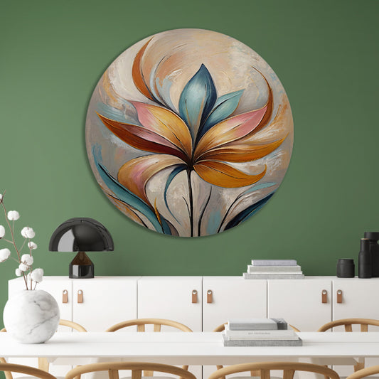 Abstracte bloem met kleurrijke bladeren aluminium muurcirkel