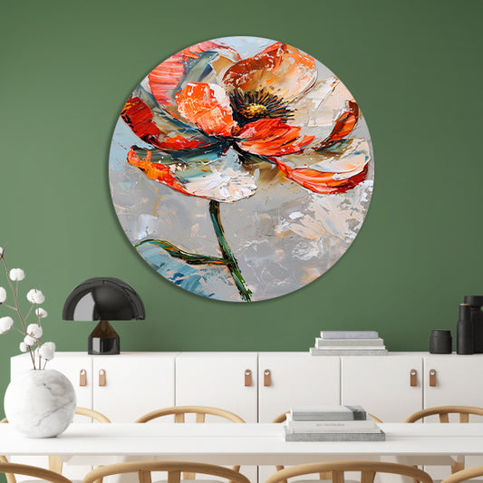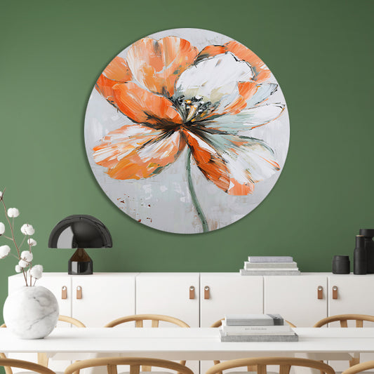 Abstracte bloem met levendige oranje en witte kleuren aluminium muurcirkel