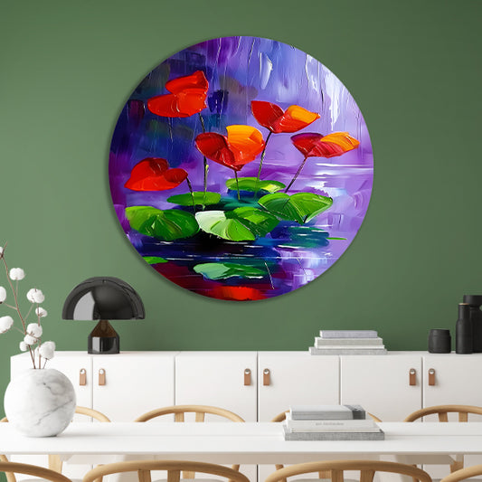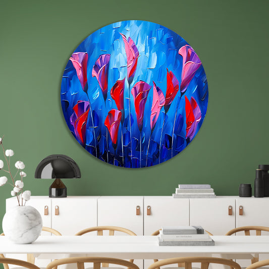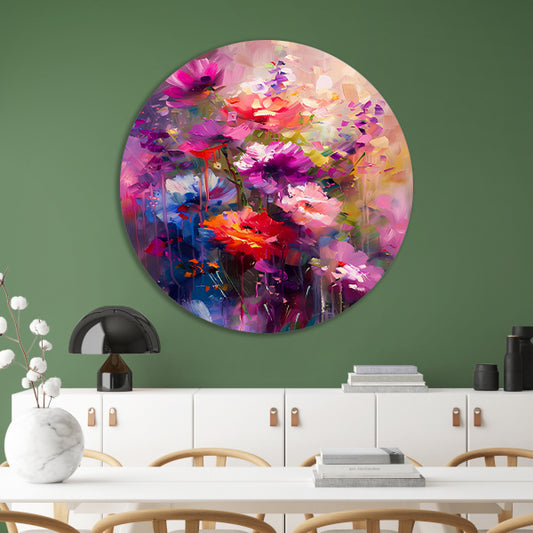 Abstracte bloemen in levendige kleuren schilderij aluminium muurcirkel
