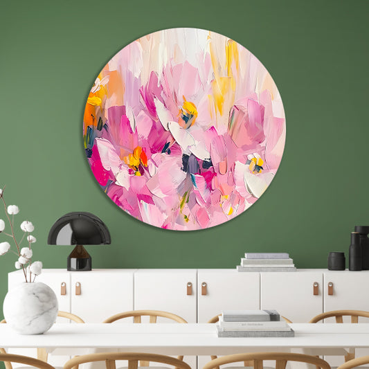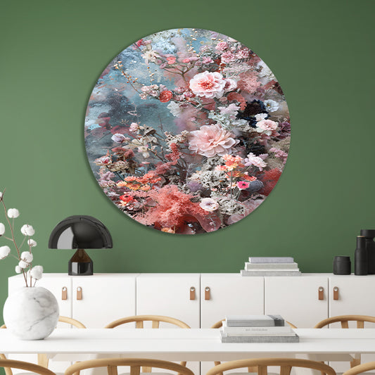 Abstracte bloemenzee met verf aluminium muurcirkel