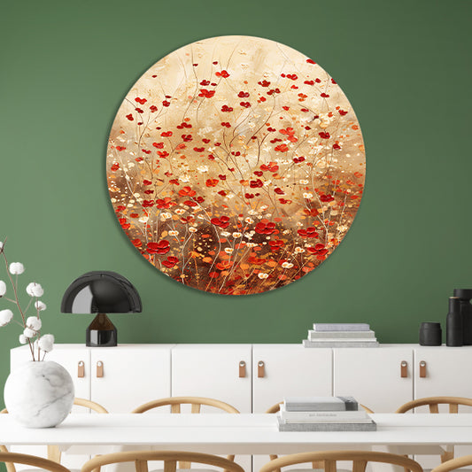 Abstracte bloemenweide in warme tinten aluminium muurcirkel