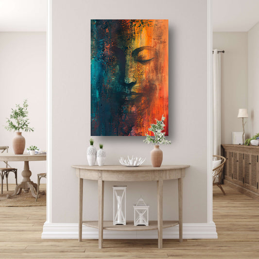 Abstracte Boeddha in levendige kleuren canvas