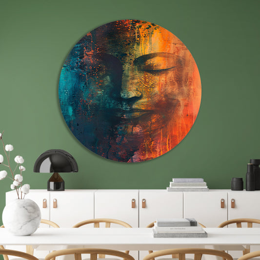 Abstracte Boeddha in levendige kleuren aluminium muurcirkel