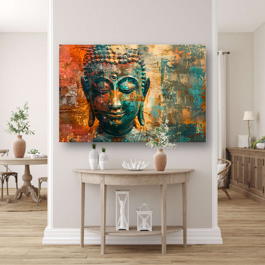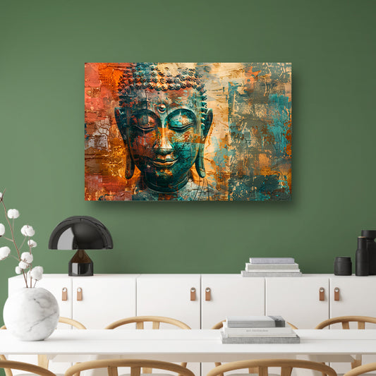 Abstracte boeddha met rustieke texturen canvas