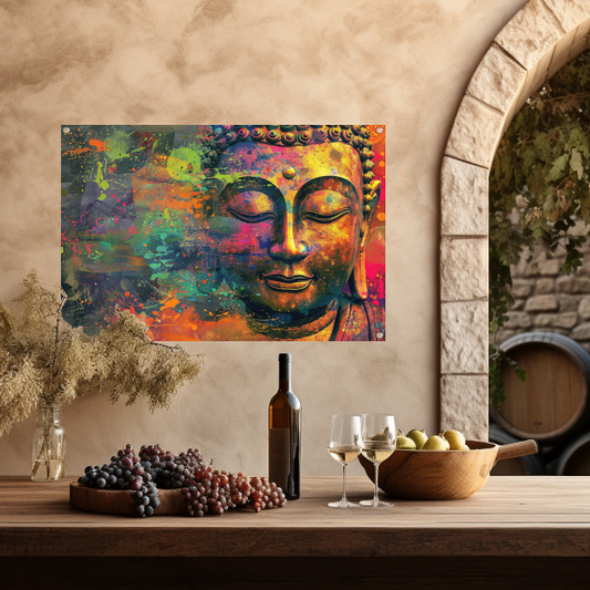 Abstracte Boeddha in levendige kleuren acrylglas