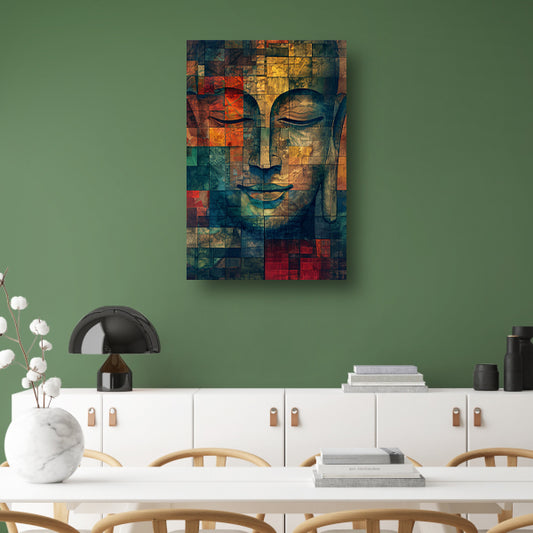 Abstracte Boeddha in kleurrijke kubistische stijl canvas met baklijst