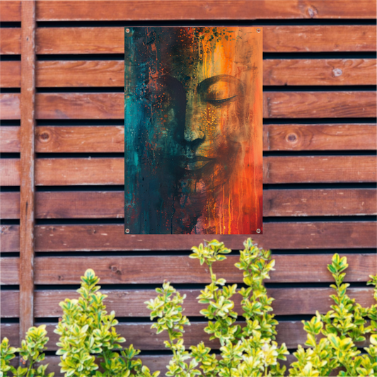 Abstracte Boeddha in levendige kleuren tuinposter