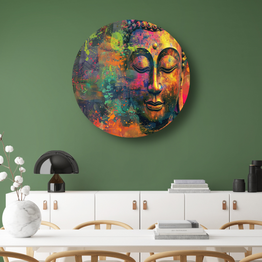 Abstracte Boeddha in levendige kleuren forex muurcirkel