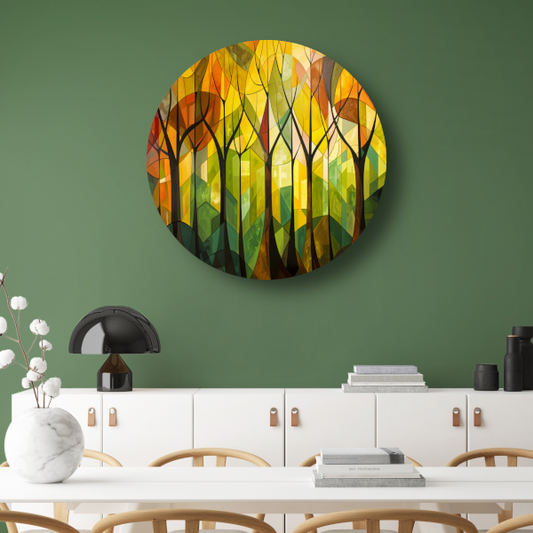 Abstracte Bomen en Stedelijk Landschap aluminium muurcirkel