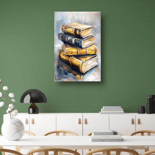 Abstracte boekenstapel in goud en blauw poster
