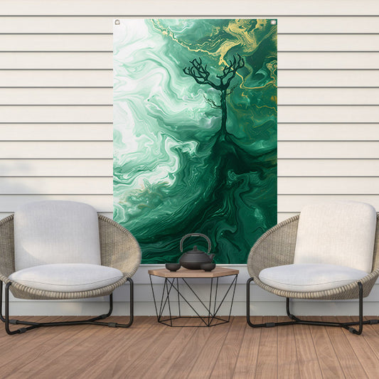Abstracte boom in groen landschap tuinposter