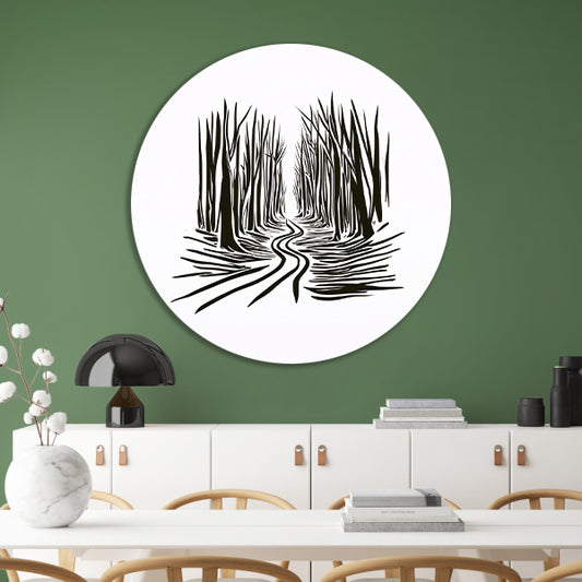 Abstracte Bomen op een Slingerend Pad aluminium muurcirkel