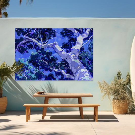 Abstracte Boom in Levendige Blauw en Geeltinten tuinposter