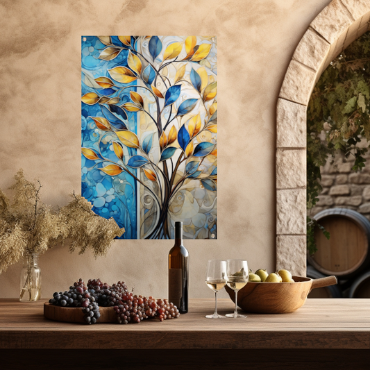 Abstracte Boom in Levendige Blauw en Geeltinten Acrylglas