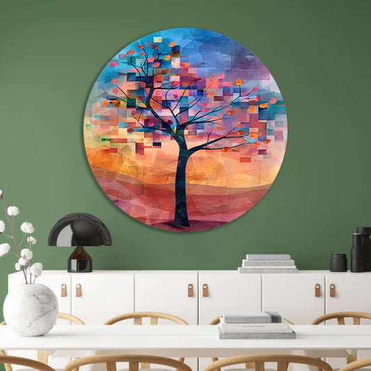 Abstracte boom in levendige kleuren aluminium muurcirkel