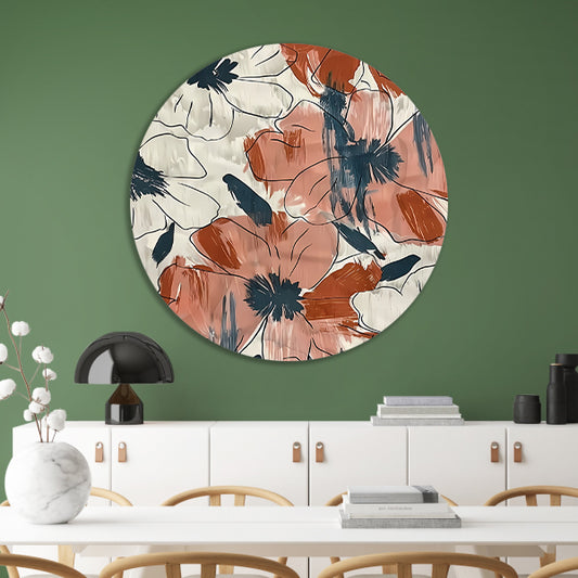 Abstract Bloemenschilderij met Rijke Kleuren aluminium muurcirkel