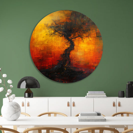Abstracte Boom omgeven door Vurige Kleuren forex muurcirkel