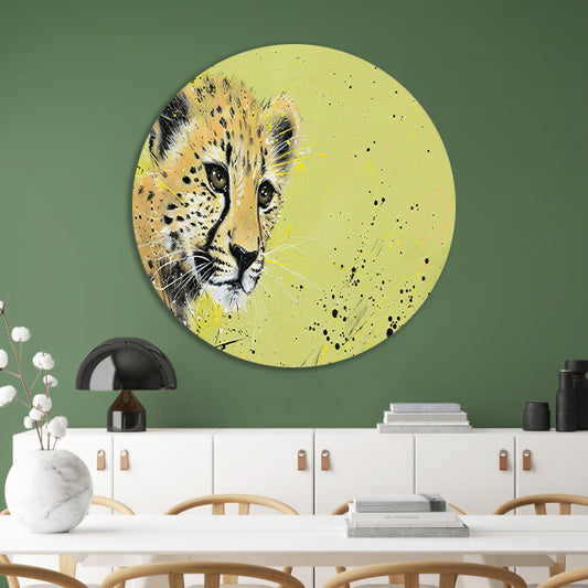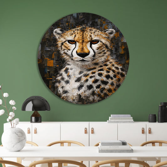 Abstracte cheeta op dynamische achtergrond aluminium muurcirkel