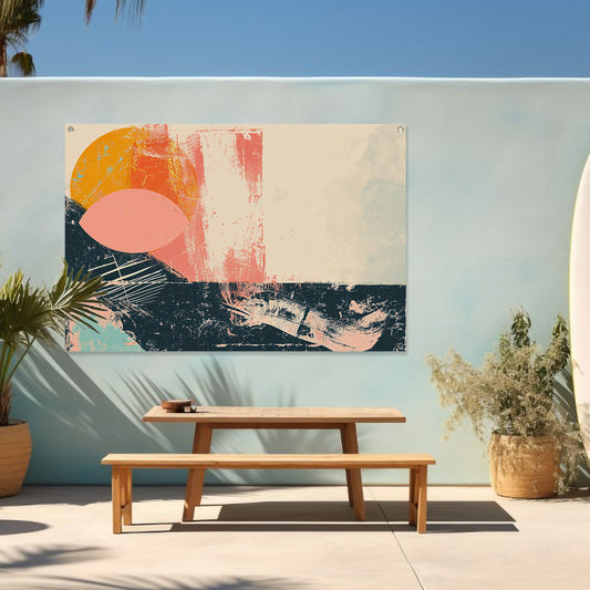 Abstracte cirkelvormen met kleurrijke texturen tuinposter