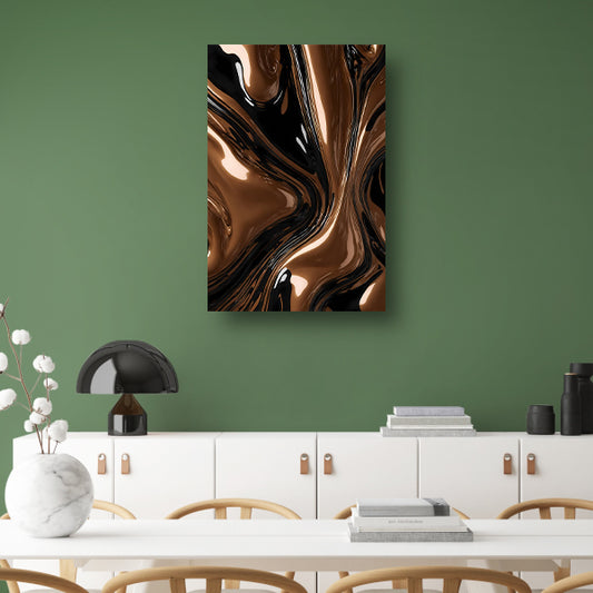 Abstracte Bronzen Wervelingen op Zwart canvas met baklijst