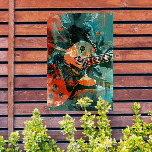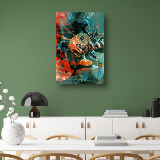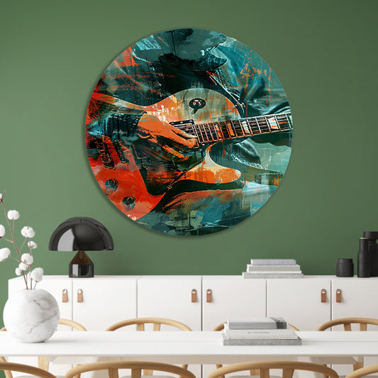 Abstracte close-up van een elektrische gitaar aluminium muurcirkel