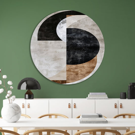 Abstracte compositie met monochrome texturen aluminium muurcirkel