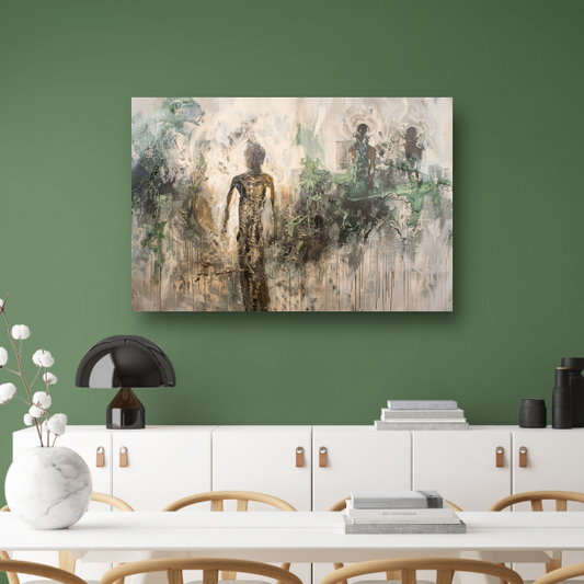 Abstracte Dans van Donkergroen en Wit canvas met baklijst