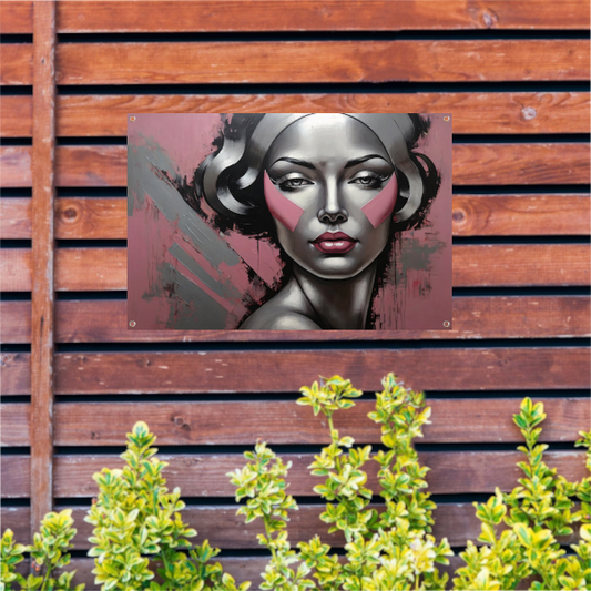 Abstracte Dame in Zilver en Roze Tinten tuinposter