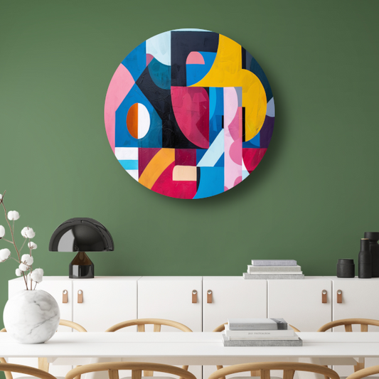Abstracte Dans van Kleuren en Vormen aluminium muurcirkel