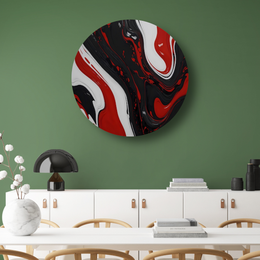Abstracte Dans van Rood en Zwart aluminium muurcirkel
