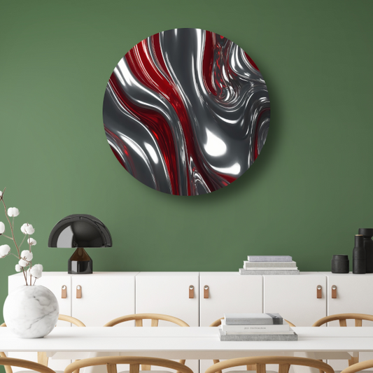 Abstracte Dans van Zilver en Rood aluminium muurcirkel