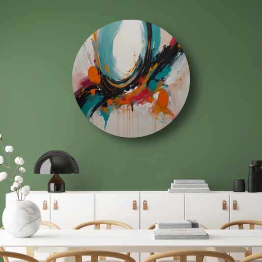 Abstracte Dans van Vormen en Kleur aluminium muurcirkel