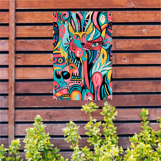 Abstracte dierenogen met kleurrijke zeepbellen tuinposter