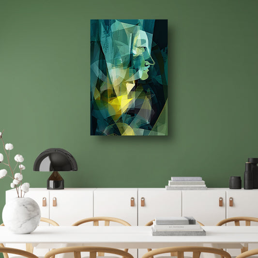Abstracte digitale kunst van gezicht en vormen canvas met baklijst